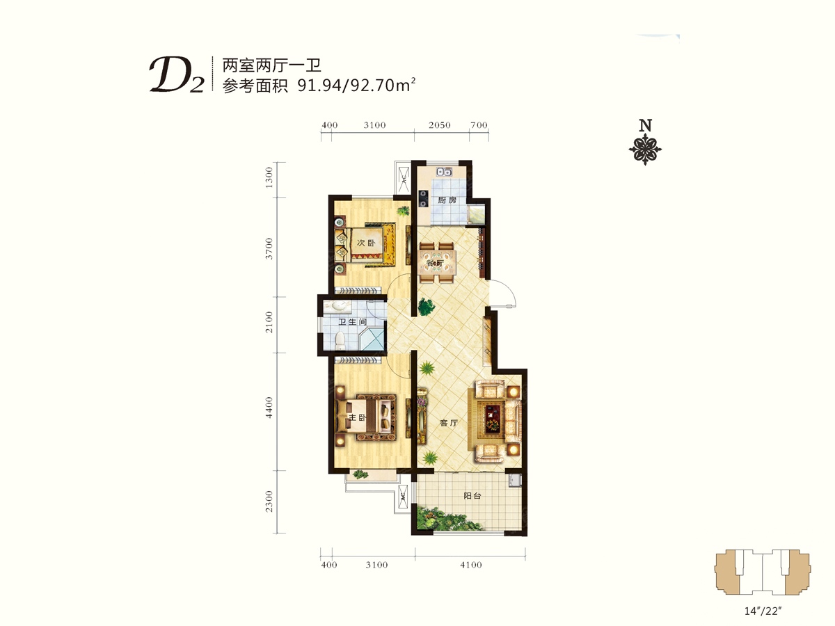 2室2厅1卫-D7