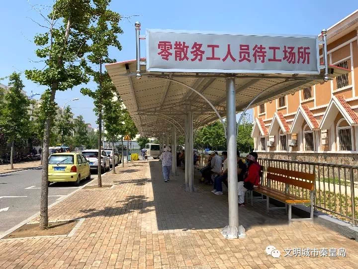 北戴河区城管执法局在海三路便民市场西侧,修建零散务工人员劳务市场,放置休息座椅,配备垃圾箱,上方有棚亭,周围有护栏,有专人管理,保障市民在使用务工人员时的合法权益受到保护,解决了人员长期聚集给市容秩序和环境卫生造成的不利影响。