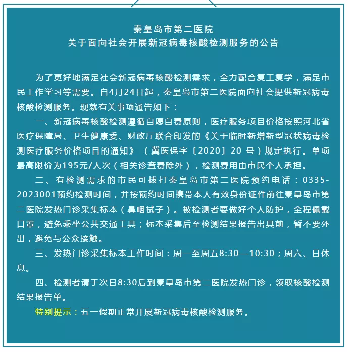 秦皇岛二院开放核酸检测
