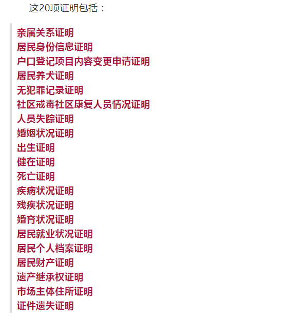 亲属关系证明、无犯罪记录证明、证件遗失证明......记者27日从民政部获悉,根据民政部等六部门近日联合出台的指导意见,20项证明被明确不应由社区居民委员会、村民委员会等基层群众性自治组织出具。