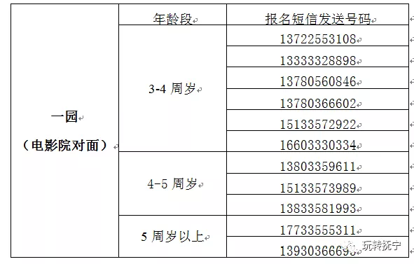 选择好报名园所,根据幼儿年龄短信分别发送至以下手机号码: