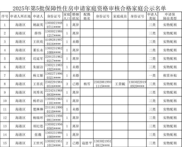 附件:2025年第5批保障性住房申请家庭资格审核合格家庭公示名单