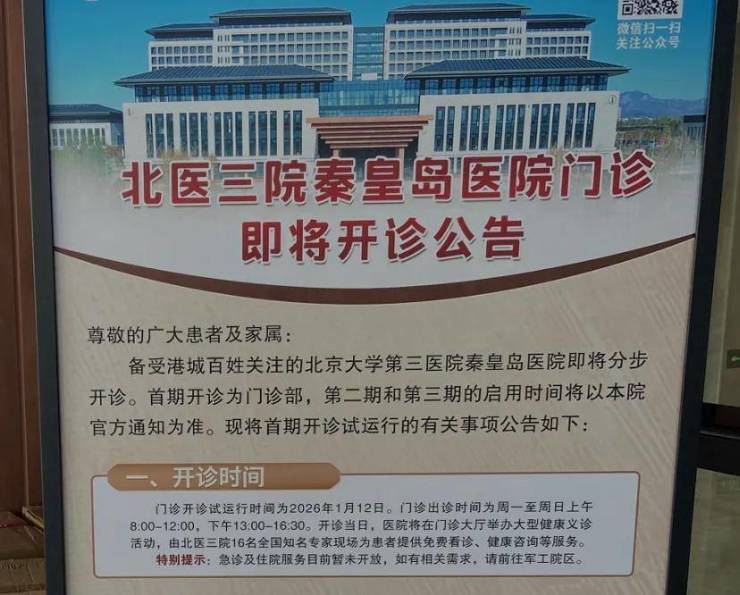 首期开诊为门诊部,第二期和第三期的启用时间将以北医三院官方通知为准。