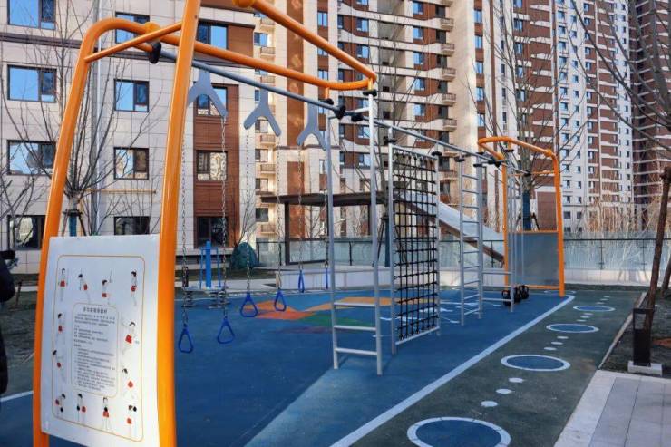 同步规划全龄共享活力空间,儿童游乐区配备双层立体滑梯,长者休闲区、青年运动区组团分布,并增设室外电梯便捷游园,处处洋溢惬意生趣。
