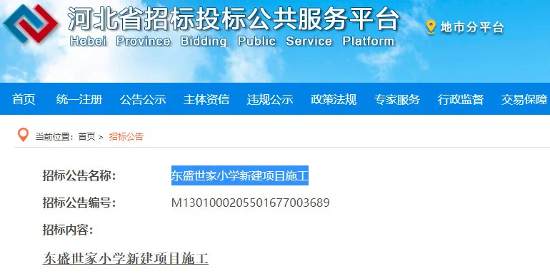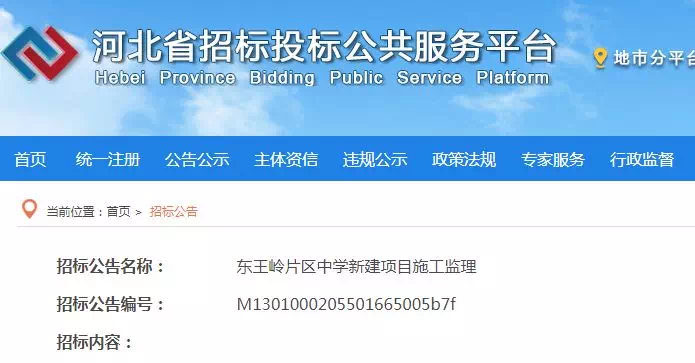 3月20日,河北招投标网发布《东王岭片区中学新建项目施工监理》,该项目总建筑面积12300平方米,新建10轨制30个教学班的中学。项目建成后可容纳学生1500名 。