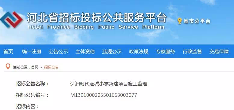 20日,河北招投标网发布《达润时代逸城小学新建项目施工监理》,该项目总建筑面积11719平方米,新建6轨制36个教学班的小学。项目建成后可容纳学生1620名。东王岭片区中学