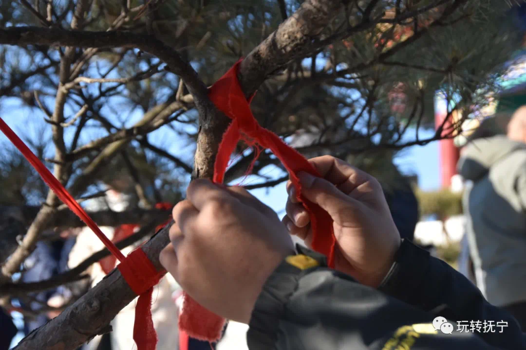 今天一大早,很多闻讯赶来的市民都来到魁星阁拍照留念,记录这一历史时刻,有的市民还满怀期待的在周边的松树上系上红布条,许下心愿,愿学业有成、金榜提名。