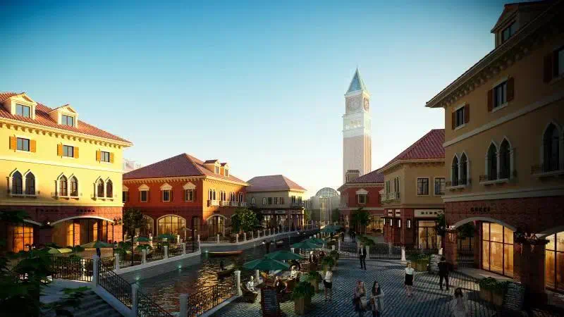 这里在建的“威尼斯水城”是一个依托“奥特莱斯(秦皇岛)世界名牌折扣城”,集旅游、餐饮、娱乐、康养、居住等为一体的多元化综合性康养度假生活城。“奥特莱斯(秦皇岛)世界名牌折扣城”属该综合体一期开发项目,现已整体封顶,并同步进入招商洽谈阶段。