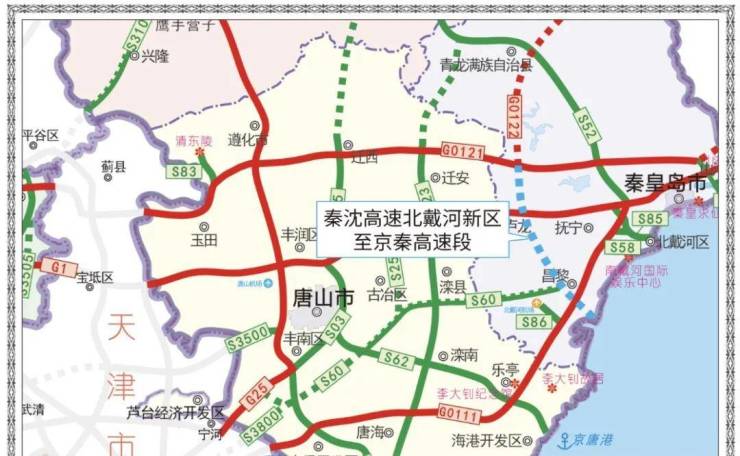 自北向南途经卢龙、昌黎、北戴河新区,沿途与京秦、京哈、秦滨高速交叉联通,是各路段通往北戴河新区的最便捷通道。