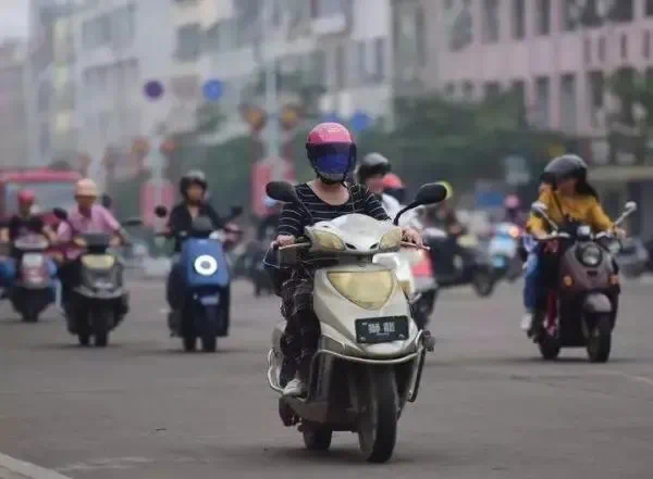在河北开车、骑摩托、骑电动车的人