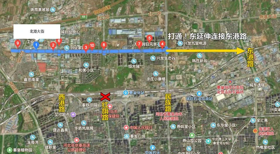 建设地点:海港区南起北二环,北至兴民街。南北向的兴澄路、民族路和西港路延伸工程,东西向的兴民街延伸,4大交建工程,环环相扣,以后北部交通将有大改善。此前,无论是从市中心来往北部,还是从京哈高速进入北部,秦青公路都承载着至关重要的一环。因此,大车多,路还堵,上下班不安全、都是不可避免的。