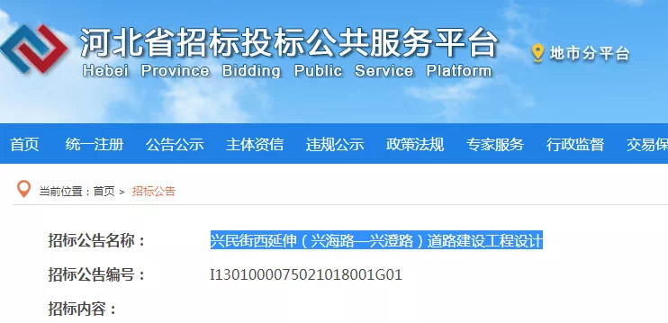兴民街西延伸(兴海路—兴澄路)道路建设工程项目此前,河北招投标网发布一则招标公告:兴民街西延伸(兴海路—兴澄路)道路建设工程项目位于杜庄片区, 道路总长度1.244公里,道路等级为城市主干路,双向六车道,新建桥涵1座。