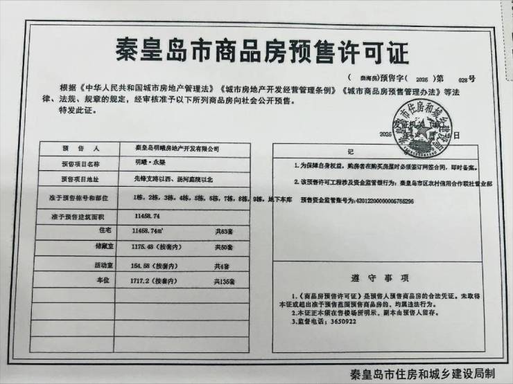 预售项目地址:海港区先锋支路以西、汤河庭院以北