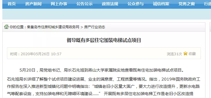 定了!秦皇岛老旧小区加装电梯试点公布。