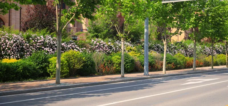 海阳路建设大街至西港路段,道路东侧,蔷薇花惊艳盛放,形成一段绝美的蔷薇花路。