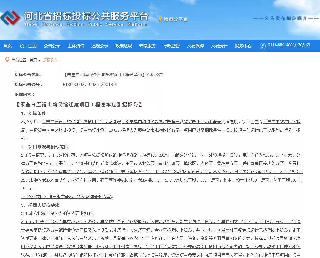一直以来,靠近城区的火葬场影响制约着北部居民生活和区域发展,这次,拟新建一座Ⅱ类建筑规模的殡仪馆,出城区,入山林。占地面积118亩,总建筑面积约18000平方米。
