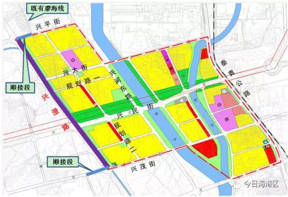 据官方公布的规划示意图:兴民街是东西向主干道,兴澄路是南北向城市主干道。