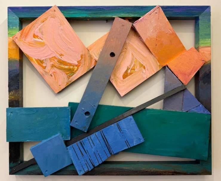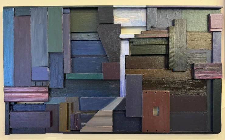 ⾃杜尚以后,艺术⼏乎就是关于物的再⽣产、再组织、再定义。从现成品到后制品,从贫穷艺术到极少主义,从波普装置到情景主义,乃⾄⽇本的物派;可以说,后现代艺术就是去绘画中⼼化的物化艺术。从形式构造上看,⽼范与这⼀历史脉络似乎互为契合——共同采取了⽣产物品并加以重构,但实则隐含了他与绘画⼆元共存的意识与审慎的捍卫;对废弃物的再改造,并⾮以物的构造取消绘画的形式,相反,利⽤物的形式语⾔,他赋予了绘画⼀种叙事的增值,致使绘画在框架局限中获得了空间的敞开。那些具体实⽤的物不再具体,在⽼范的⼿⾥化约为抽象的构成,并被涂上了意味深⻓的⾊彩,形成了装置与绘画平⾏的对称性与隐喻性。那是后制品绘画。那些⾊彩,隐含了⽼范⼀种回望梵⾼、塞尚以及对现代主义绘画不失温婉的致敬与重写。以反绘画的形式来捍卫绘画。在此意义上,⽼范是⼀个前卫的保守主义者。