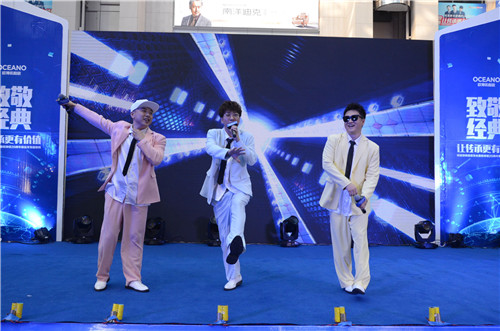 2018年10月28日,“致敬经典 让传承更有价值-阿里郎明星歌友会暨欧神诺20周年新品发布超级购”盛典于西安大明宫北二环店盛大举办。超人气明星组合——阿里郎空降现场,倾情演唱,一首首魔幻神曲将活动彻底引爆,令人惊叹的新品、无法抗拒的20周年超级钜惠则将购买热情推至沸点。