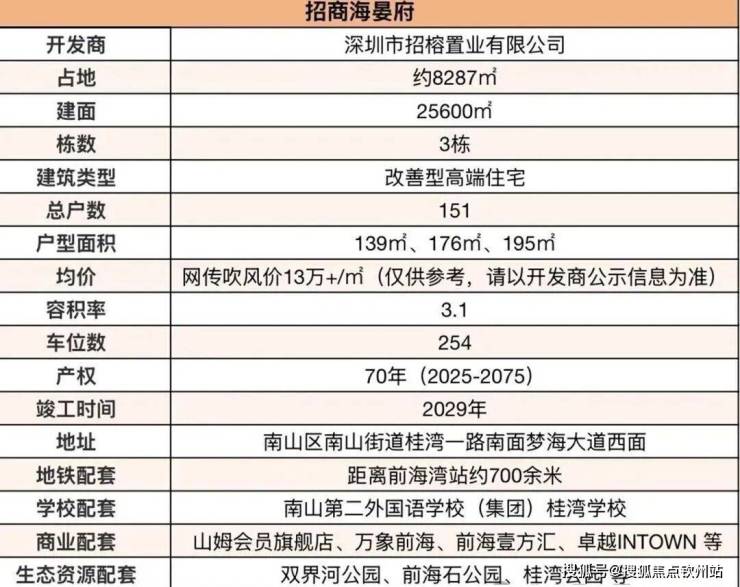 4、品牌与设计:开发商是招商蛇口,在深圳打造过多个高端项目(如招商玺家园),有口碑。项目预计采用现代公建化玻璃幕墙,设计团队经验丰富。物业服务预计也是其旗下高端物业,水平有保障。