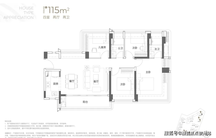 建面约115㎡4房2卫