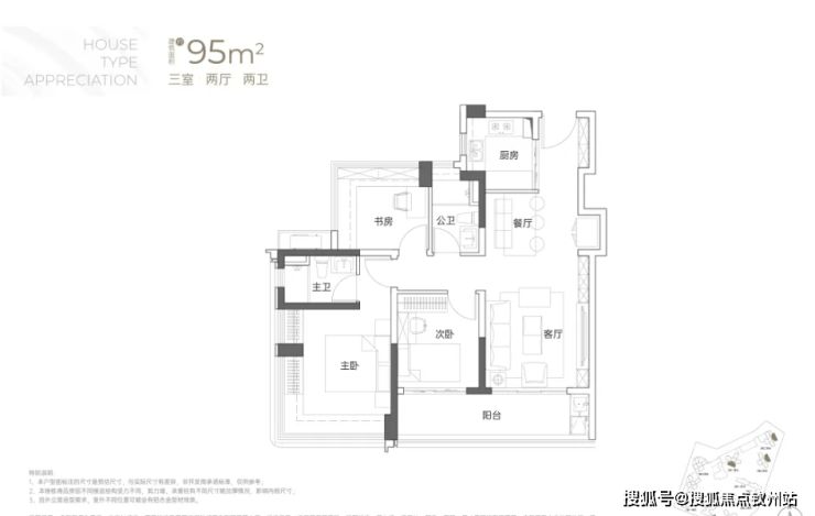 建面约95㎡3房2卫