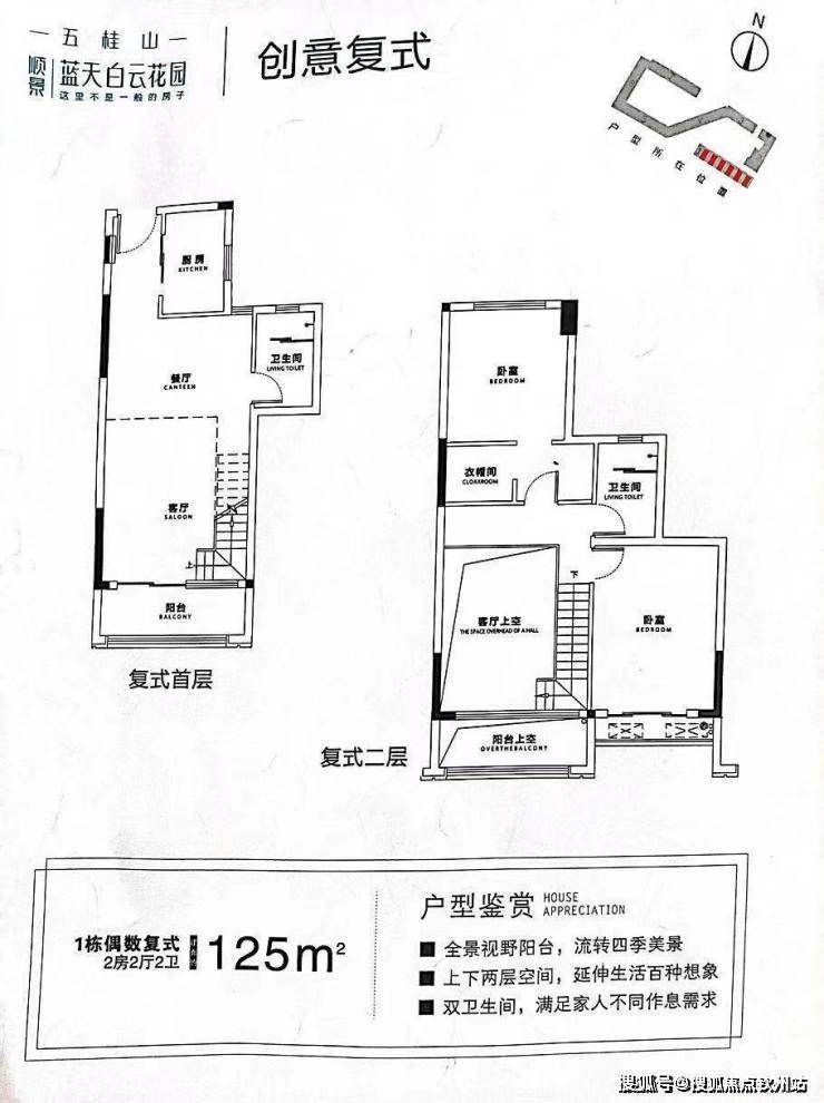 2房2厅2卫,全景视野阳台,上下两层空间,双卫生间;