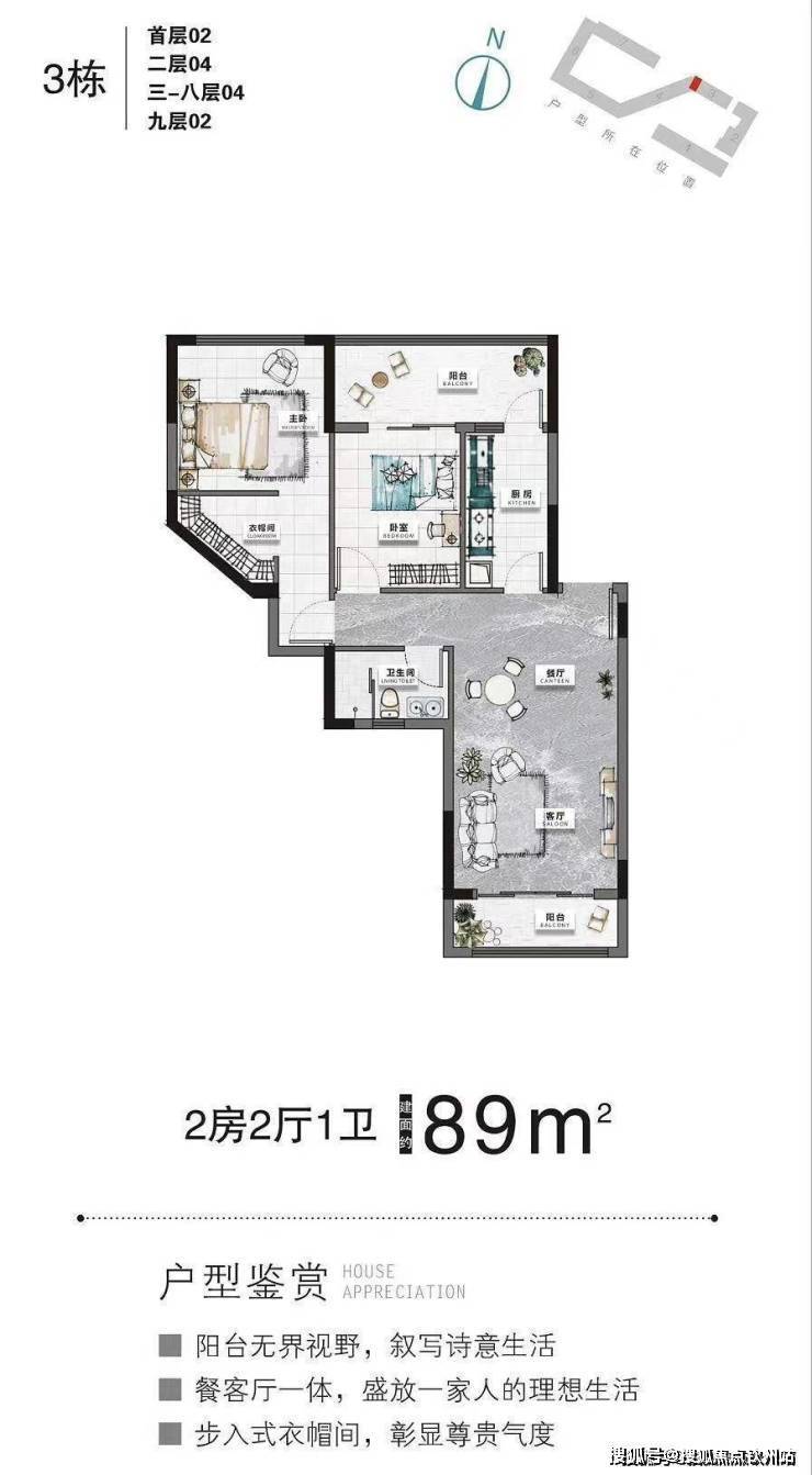 在售面积:89m²(首层02、二层04、三至八层04、九层02,户型)