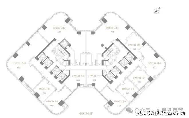 方胜纹双核心筒的设计使得整栋建筑更加高效和私密,并实现了双专梯电梯入户,为塔尖人群高效的工作和私密的生活而服务。
