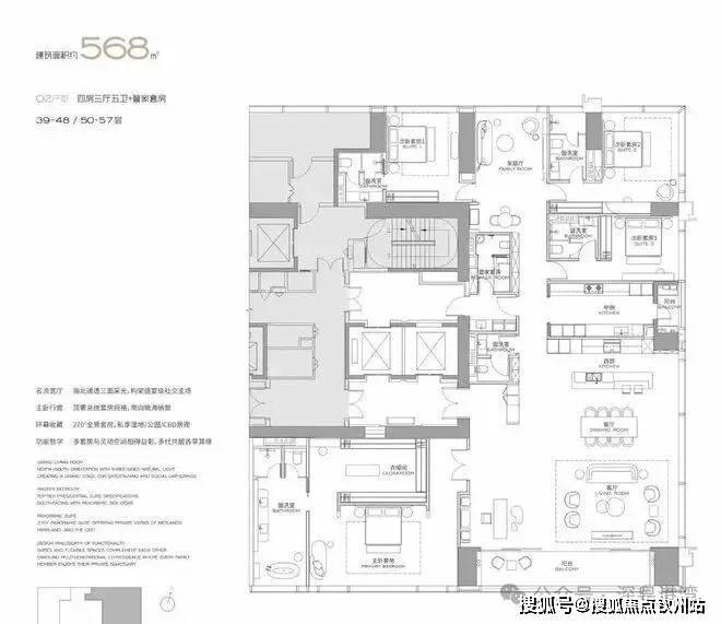 主力户型:303㎡、327㎡、404㎡、568㎡等大平层,最大户型达1032㎡