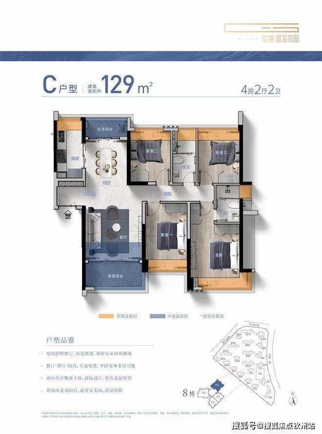 建筑面积约104-229㎡3-4房美学平层,着落其间
