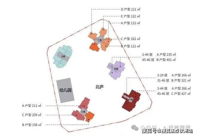1栋A座:148米,46层,共85户,朝南为主,三梯两户,约266-321平,427平(顶复)