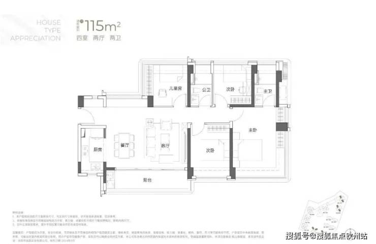 建面约115㎡4房2厅2卫