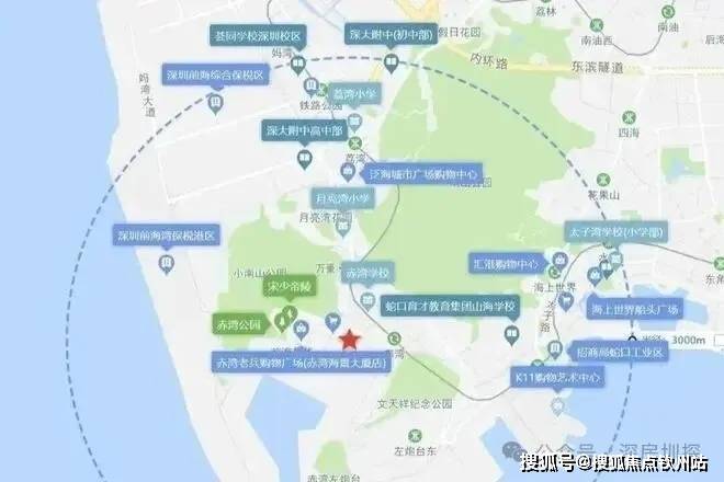 地块周边教育、商业配套,医疗配套有待提升,3km范围内有赤湾学校、月亮湾小学、太子湾学校、深大附中、K11购物艺术中心、海上世界船头广场、嘉盛荟商业中心、泛海城市广场等。
