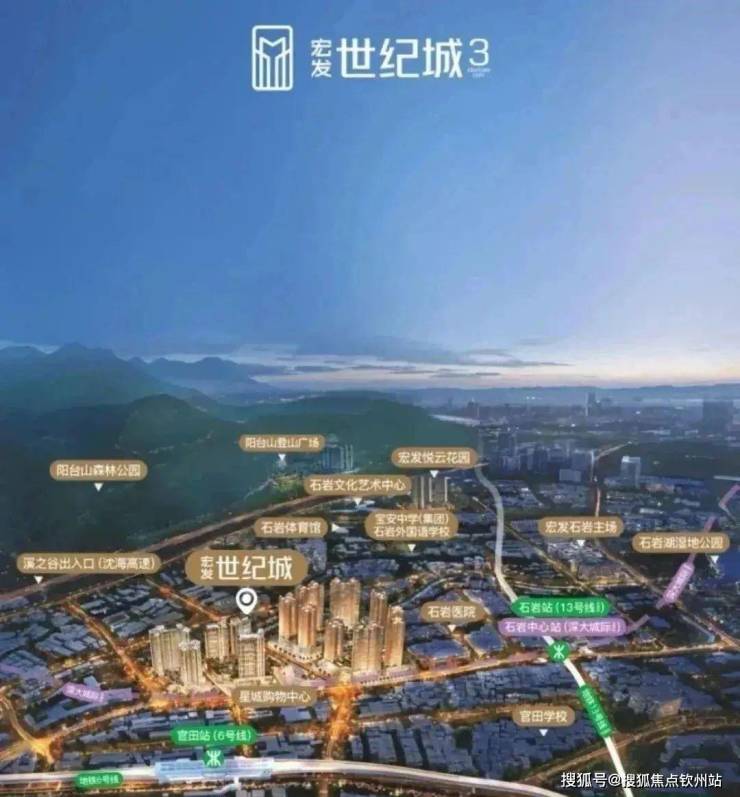 项目南瞰阳台山森林公园,阳台山海拔为587.1米,有“深圳西部第一峰”之称;西望石岩湖湿地公园,拥有深圳最长环湖绿道(约30.8公里),城市绿肺鲜氧谧境。