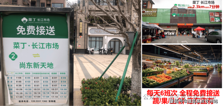 在小區門口就有長江市場免費接駁車站,直達片區最大菜市場,每日有6班次,業主全程免費接送,令到很多港澳客戶以及海外客戶在遠洋新天地屋苑可以很無憂的開啟退休生活