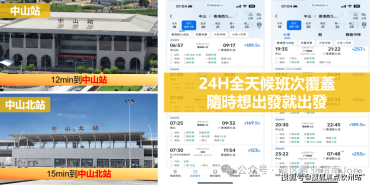 城軌中山站/中山北站 :廣州南站換乘 接駁西九龍站直達香港,24H全天候班次覆蓋 隨時想出發就出發