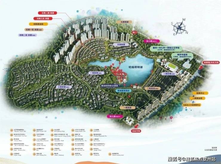 五矿哈施塔特,以哈尔施塔特小镇为蓝本,结合惠州本土风情打造的高端别墅及高层住宅产品;占地96万㎡,建面123万㎡,分5期开发,有着超低的1.35容积率以及高达41%的绿化率。