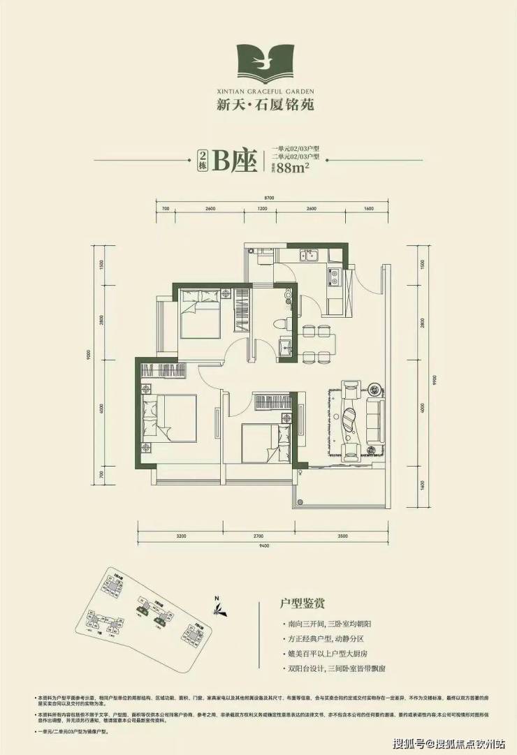 (2)82-88㎡的3房2厅1卫:折后总价669-799万元。
