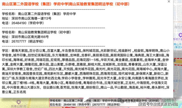 处南二外学府一小和南二外学府中学学区范围内,直线距离约900米还有深圳南山实验教育集团明远学校
