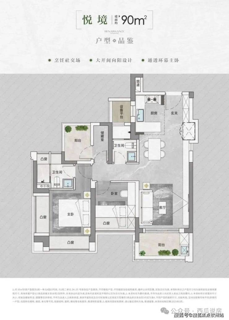 • 得房率:通过创新性的飘窗、双阳台改造、设备平台赠送等设计,实现平均94-96%的惊人得房率。