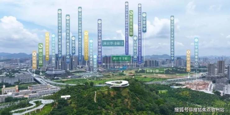 满京华金硕臻府,位于深圳光明区光明科学城“一心两区”的核心区域,紧邻占地208万平方米的科学公园,属于光明规划中“最宜居、居住板块最大”的片区。项目北侧与科学公园仅一街之隔,东、南侧为深圳小学光明学校狮山校区及初中校区,周边市政配套规划密集,如深圳科技馆新馆、国际美术馆等均在建设中,预计2026年前全面落成。