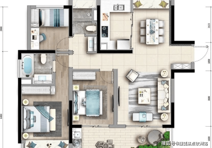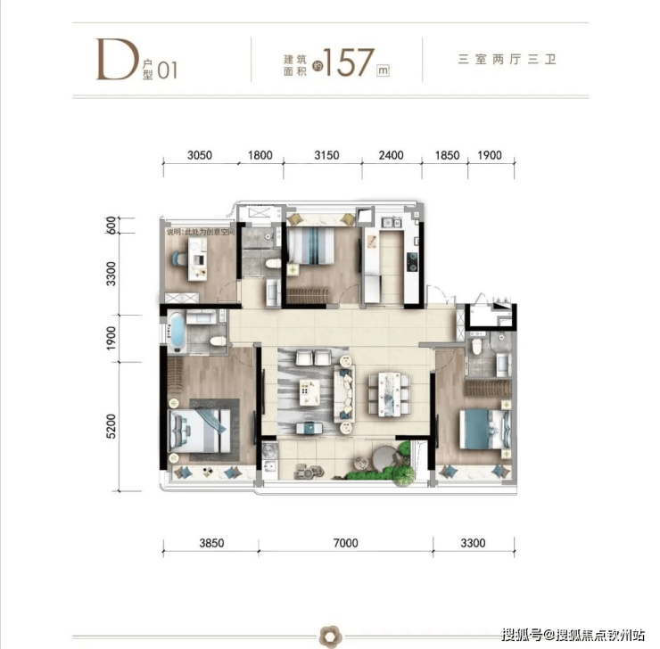 ??主推产品①??:96㎡三房二卫