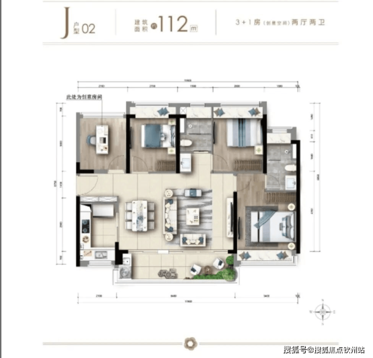 主推产品:112㎡3+1房两厅两卫