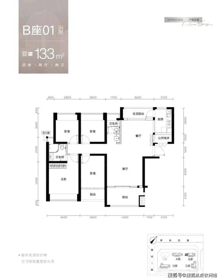 【梯户比】A-C座2梯4户,D座2梯5户