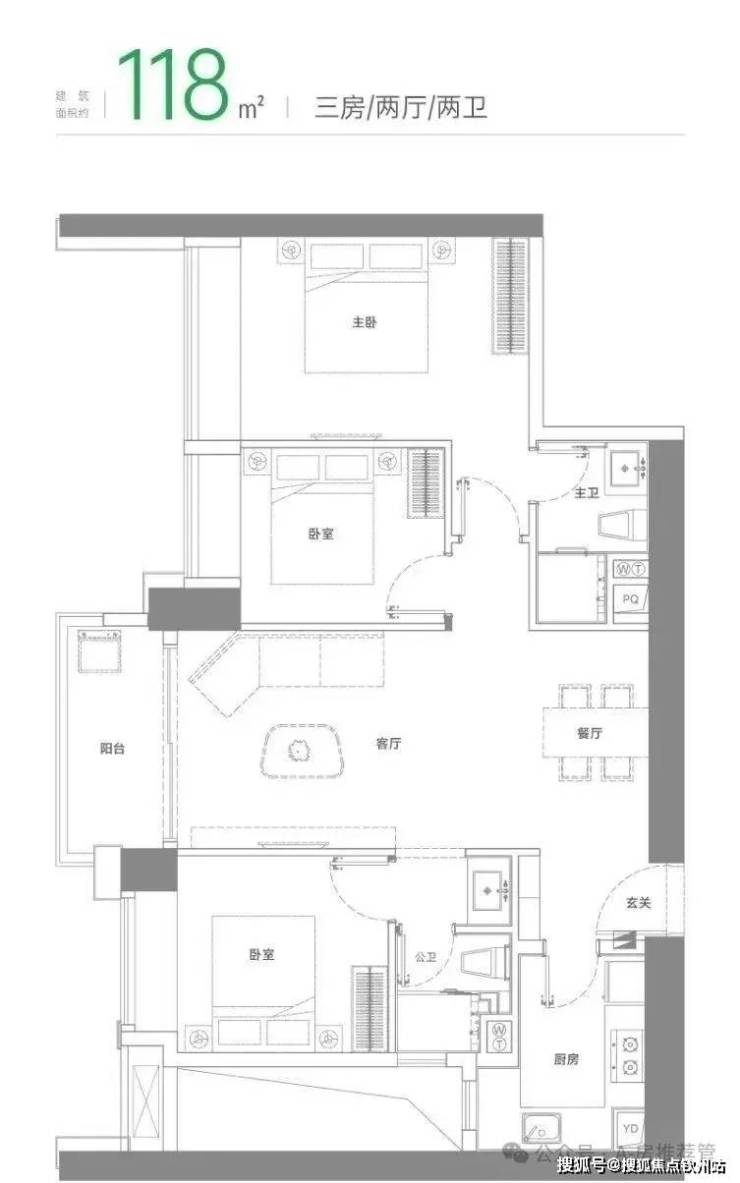 建面约118㎡三房两厅两卫