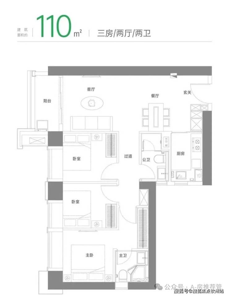 建面约110m²三房两厅两卫