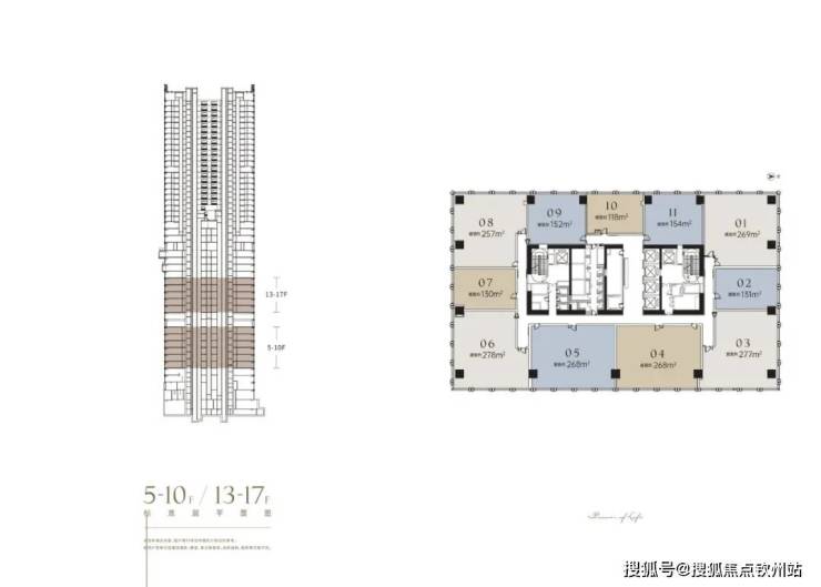 【5-10F/13-17F 118~278㎡ 6梯11户】