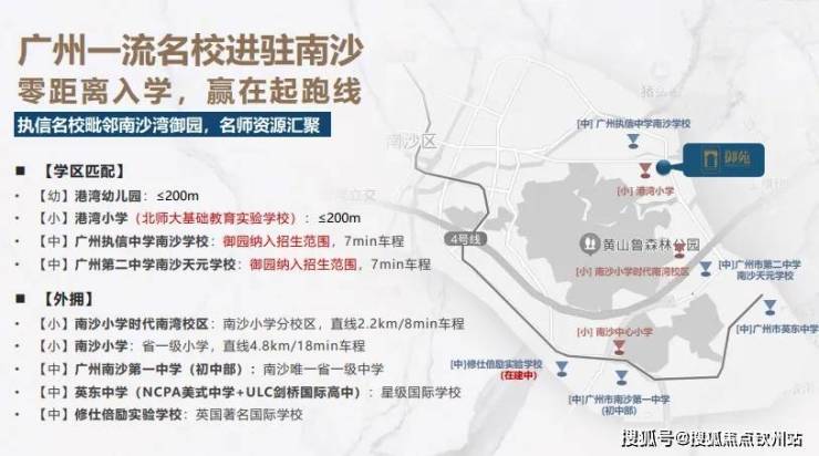 学校:周边建设了南沙小学(学位),广州二中天元小学(学位)执信中学南沙校区、北京师范大学基础教育实验学校、广州市二中南沙学校等名校,从幼儿园到中学,实现家门口教育的便利。