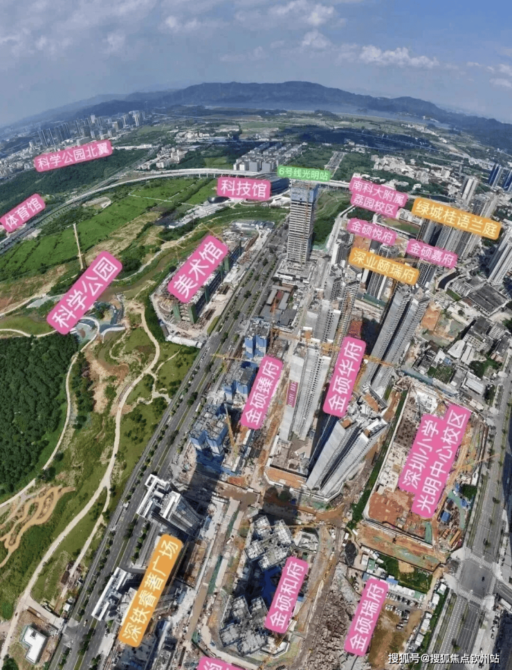 满京华金硕悦府,位于深圳光明区光明科学城“一心两区”的核心区域,紧邻占地208万平方米的科学公园,属于光明规划中“最宜居、居住板块最大”的片区。项目北侧与科学公园仅一街之隔,东、南侧为深圳小学光明学校狮山校区及初中校区,周边市政配套规划密集,如深圳科技馆新馆、国际美术馆等均在建设中,预计2026年前全面落成。
